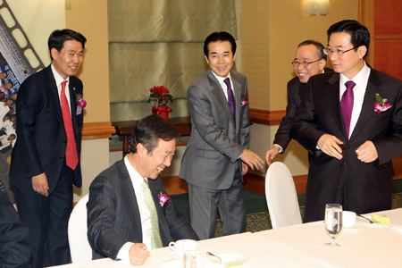 ▲ (왼쪽부터) 정구정 회장과 이만우 의원, 나성린 의원, 정성호 의원, 이전환 국세청 차장이 담소를 나누고 있다.