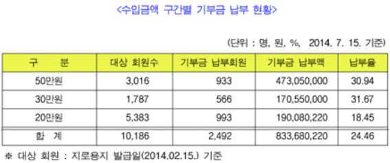 5월 한달 동안 378명의 회원이 1억2760만원을 추가로 납부했으며, 7월15일까지 집계된 공익재단 기부금은 2천492명의 회원이 총 8억3368만원을 기부금으로 납부한 것으로 확인됐다.