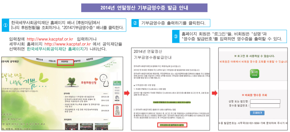 [조명] 한국세무사회공익재단 2014년도 기부금영수증 어떻게 발급받나?