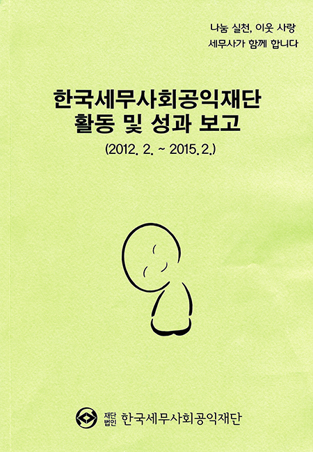 회원보수교육시 전 회원들에게 배부한 한국세무사회공익재단 활동책자는 2012년 발기인 총회를 시작으로 2013년 12월 10일 거행된 ‘한국세무사회공익재단 출범식 및 제1회 지원금 전달식’까지의 설립과정과 그 간의 재무현황, 후원회원 모집현황 등 2012년 2월부터 2015년 2월까지 한국세무사회공익재단이 걸어온 3년간의 활동과 성과를 책자에 담았다.