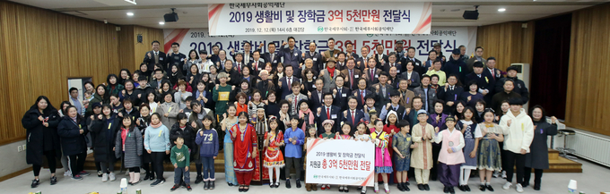 한국세무사회(회장·원경희)는 12일 서울 서초동 세무사회관에서 '2019년도(제7회) 한국세무사회공익재단 지원금 전달식'을 개최했다.