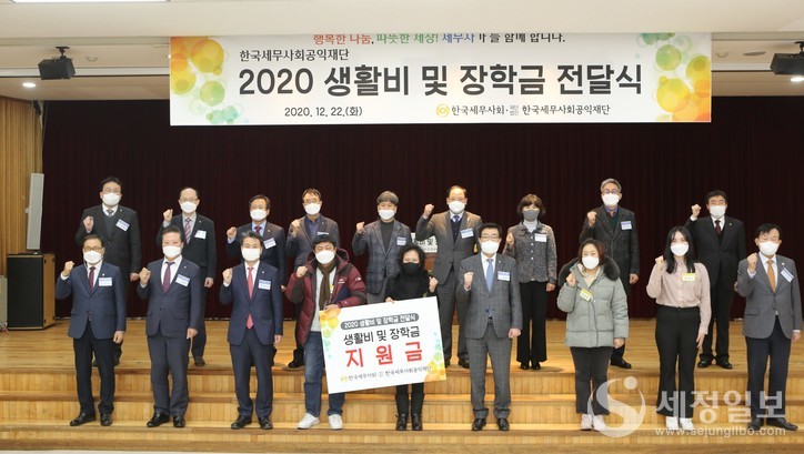 한국세무사회 공익재단은 22일 서울 서초동 한국세무사회관에서 `20년도 생활비 및 장학금 전달식을 개최했다.