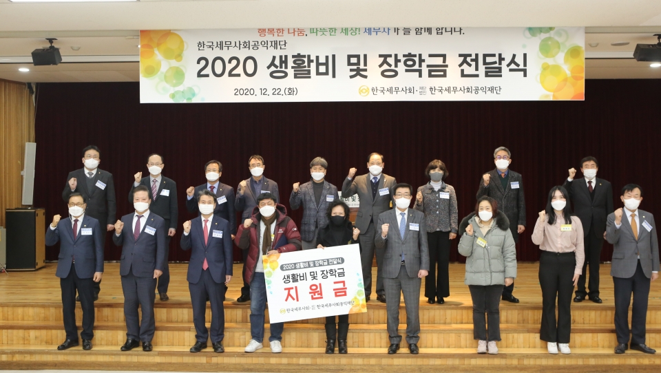한국세무사회가 22일 형편이 어려운 이웃에게 약 2억 규모 생활비와 장학금을 전달했다.