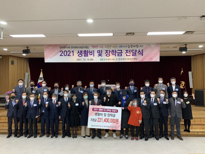 ▲ 한국세무사회공익재단은 오는 13일 2022년도 생활비와 장학금 전달식을 갖는다.<사진은 지난해 전달식 장면>