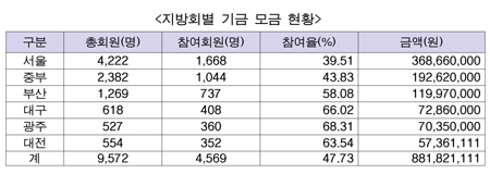 세무사회, 공익재단 설립기금 881,821,111원으로 모금마감… 세무사회 단결력 입증